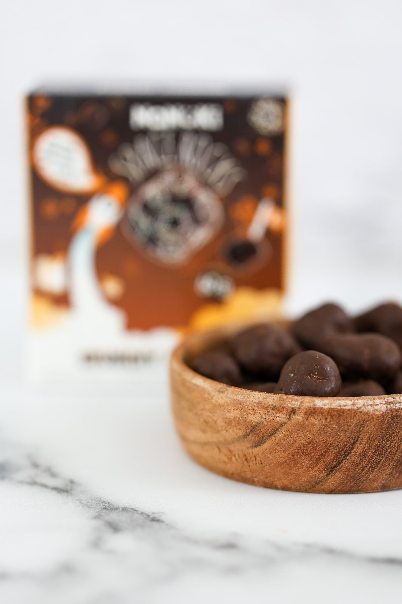 Toasted chickpeas and coconut caramel clusters, coated in dark chocolate.
